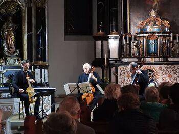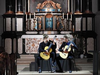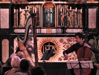 Sie spielen Werke von Arthur Honegger, Luciano Berio, Bela Bartok und Johann Sebastian Bach.