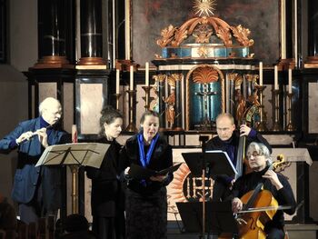... das Licht entschwindet. Von den vier Männerstimmen, Chant 1450, geleitet und gehalten, tauchen wir tief in die Zeit des 15./ 16. Jahrhunderts. Christobal de Morales, J. Anchieta und F. de la Torre heissen sie, deren Kompositionen, aus alter Mensuralnotation transkribiert, zur Wiederaufführung gelangen.