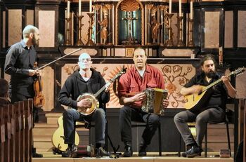 Klezmermusik war immer unterwegs, mit und für Menschen, die keine Chancen hatten und sie doch nutzten. Klezmer, ukrainische Lieder, russische Tangos, slawische Volksmusik, bärndütschi Lieder, unverfroren Jazziges sind die Zutaten zur weltoffenen, fröhlich-schwermütigen Musik.